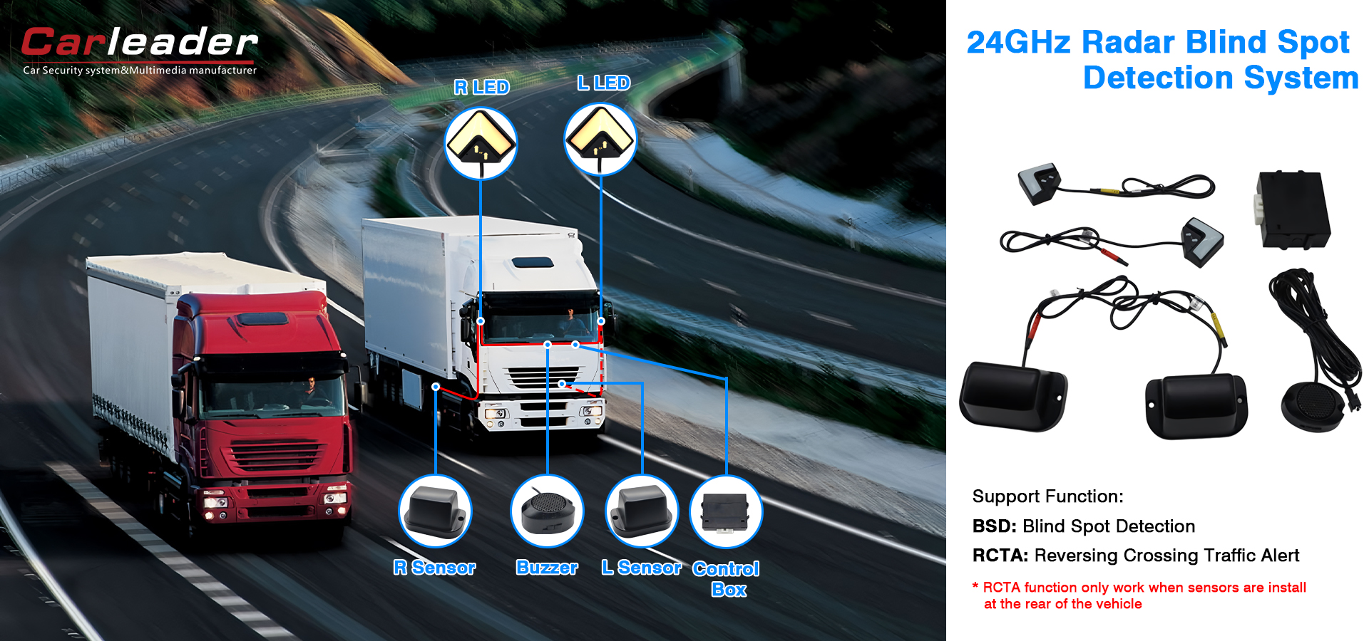 1080P वाटरप्रूफ रियर भ्यू क्यामेरा अटो शटरको साथकार्तीडरको 2CHZ रेडर सेन्सर क्षेत्र पत्ता लगाउन प्रणालीले 24ghz मिलिमेटल वेभल टेक्नोलोजी टेक्नोलोजी र सुपरपाटपुट टेक्नोलोजी टेक्नोलोजी प्रयोग गर्दछ र रियर-गति आउँदै गरेको वाहनलाई पत्ता लगाउँदछ। जब गाडी खतरनाक अन्धा कार्यालयमा हुन्छ, 24ghz मिलिमिटर रेलिमेटर रेडर कार दुर्घटनाहरूबाट जोगिनका ड्राइभहरूको लागि आवश्यक सूचि।