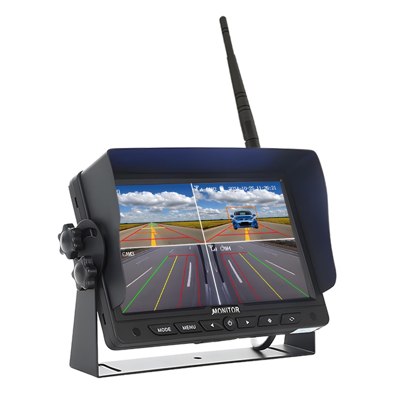 Carleader 7 Inch BSD BSD Blind Spot Detection Wireless Monitoring System, AI पत्ता लगाउने प्रकार्यसँग एकीकृत डिजिटल वायरलेस क्यामेरा प्रणाली, पैदल यात्री र सवारी साधन पत्ता लगाउने र अलार्मलाई समर्थन गर्ने, चालकलाई सवारीसाधनको वरपरको अवस्थाबारे सचेत गराउँछ। 4 च्यानलहरू सम्म 720P वायरलेस क्यामेराहरू स्वत: जोडी, प्रत्येक च्यानल समर्थन एआई पत्ता लगाउने प्रकार्य। वास्तविक स्थापना स्थिति र कोण अनुसार पत्ता लगाउने क्षेत्र आकार समायोजन गर्न निर्मित AI क्यालिब्रेसन मेनू मनिटर गर्नुहोस्। मोनिटर समर्थन लूप रेकर्डिङ को वैकल्पिक प्रकार्य, 256GB SD कार्ड भण्डारण समर्थन।