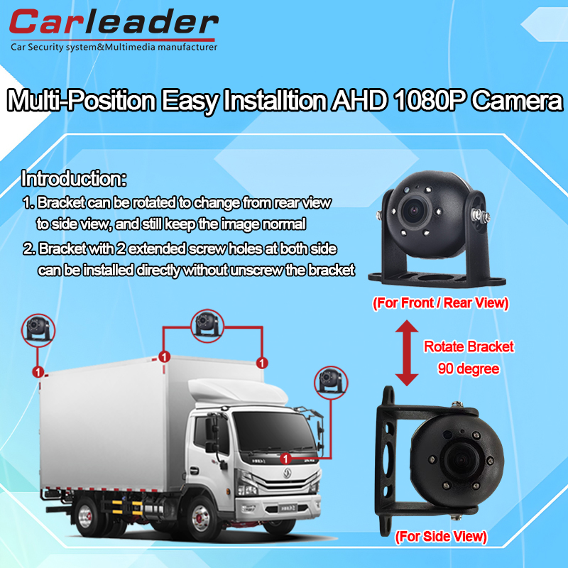कारलिडरAHD Heavy Duty Vehicle Front / Side / Rear View क्यामेरा माथि, तल, दायाँ, बायाँमा कोष्ठक स्थापना प्वाल सहित, जसले क्यामेरालाई क्यामेरा कोष्ठक समायोजन गर्न विभिन्न क्यामेरा स्थिति, जस्तै अगाडि, छेउ र पछाडिको दृश्य, यो क्यामेरालाई सवारी सुरक्षा निगरानी प्रणालीको लागि थप उपयुक्त बनाउँदछ।